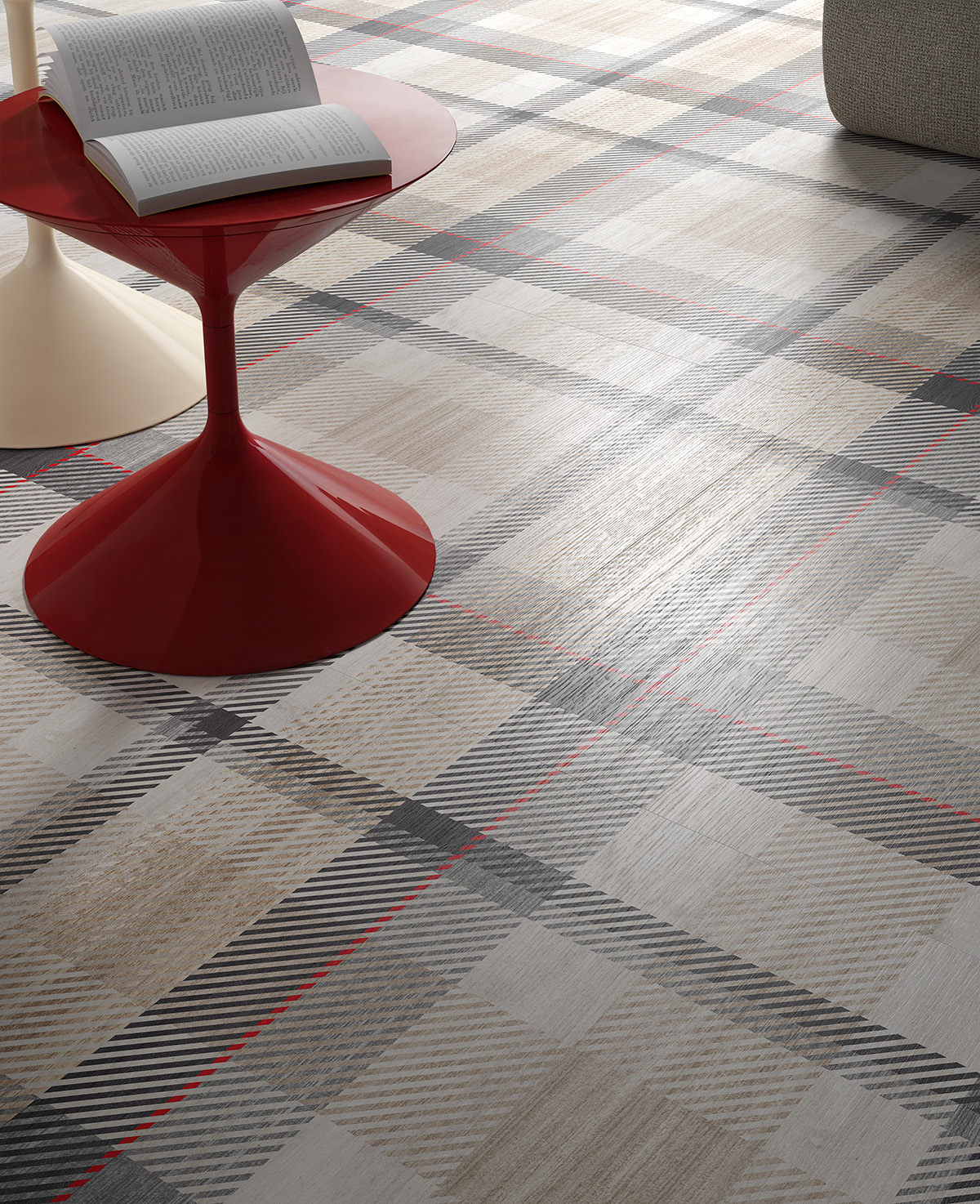 Tartan Wood系列地板,灵感源于苏格兰皇家格纹,它承袭英伦百年格纹的贵族底蕴,又融入意大利设计的轻奢格调,通过木材的天然肌理赋予设计更丰富的层次变化,为现代家居空间注入复古与时尚交织的独特魅力。