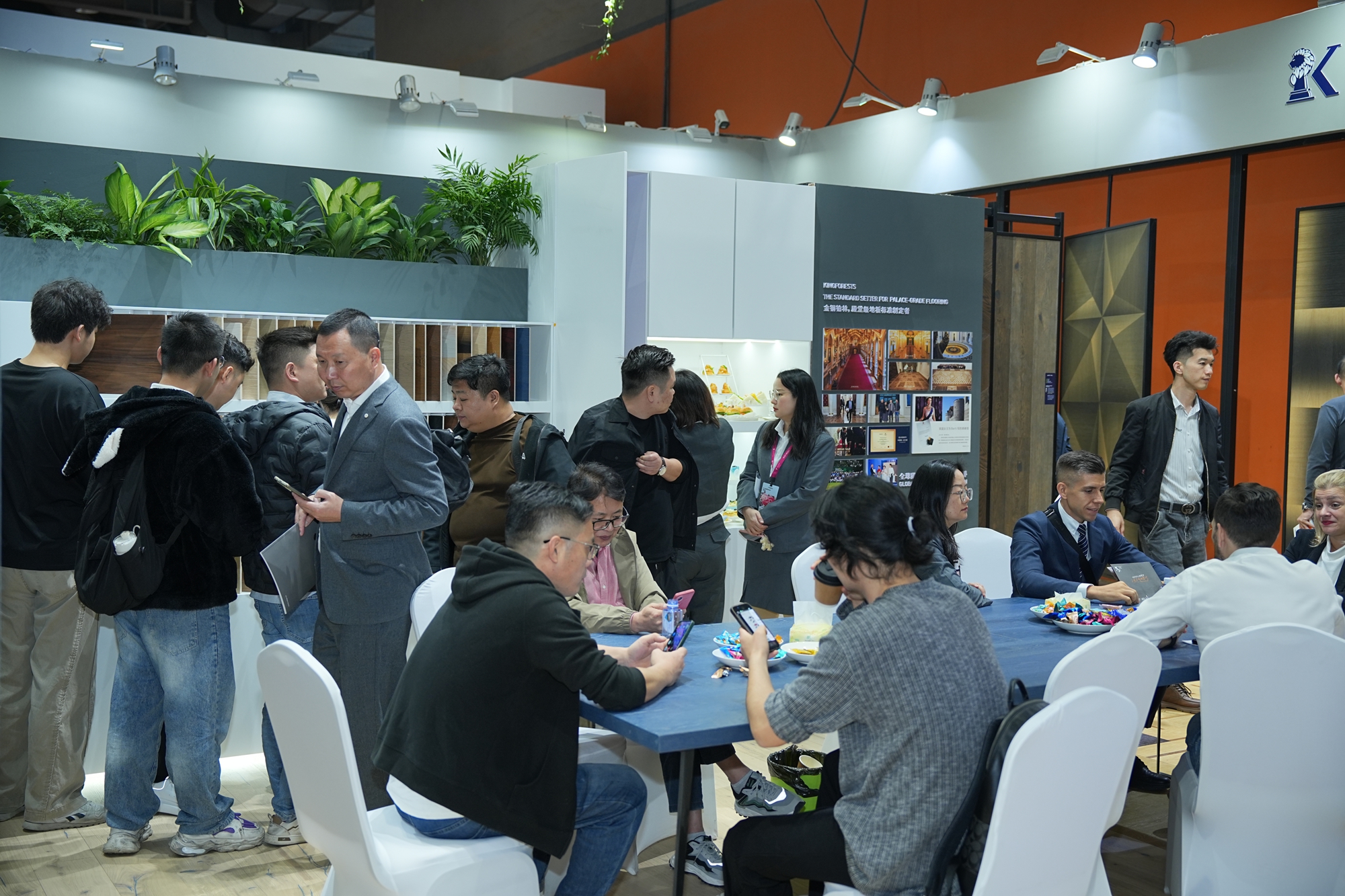 此外,西安、湖南、成都、深圳、上海等多地精英设计师团组团到访,展位内人流如织,洽谈区座无虚席。设计师们纷纷触摸感受不同木材的纹理与质感,对意大利百年品牌的匠人精神表示赞赏。多位设计师现场表示,金钢铂林展示的产品颠覆了他们对地板的传统认知,使其从基础建材升华为空间艺术的重要构成元素,为高端设计项目提供了更多可能性。