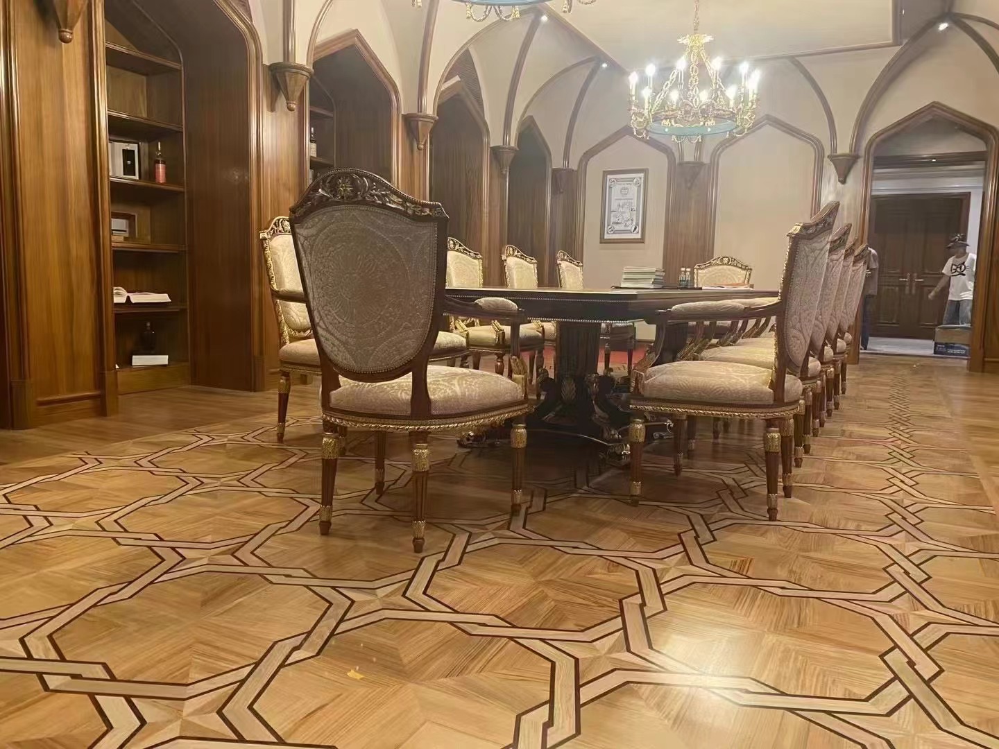 许多豪宅有的偏好超长超宽规格的地板,大幅减少接缝,营造出开阔、沉稳、极具张力的空间气场,有的偏爱艺术拼花,以精妙拼接勾勒出华美的地面画卷,成为空间中流动的艺术焦点。