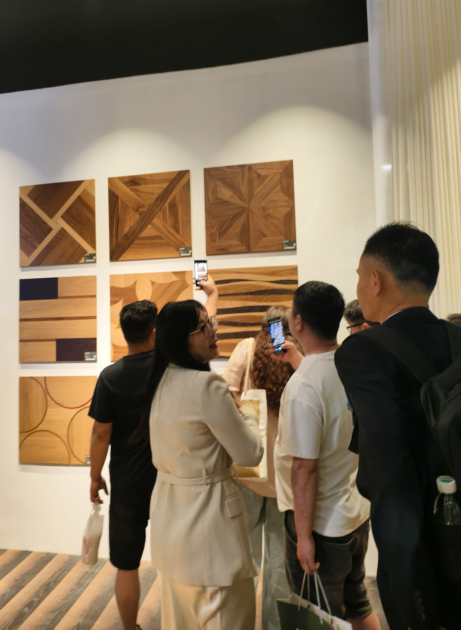 从精美繁复的镶嵌拼花,到简约灵动的几何图案;从承载文化记忆的旅途系列,到颠覆传统的Diesel跨界联名——每一块地板都像一件艺术品,静静诉说着材质、色彩与工艺的故事。观展者纷纷驻足拍照、抚触,细细品味每一处纹理与拼接的匠心,现场交流气氛热烈,人气持续高涨。