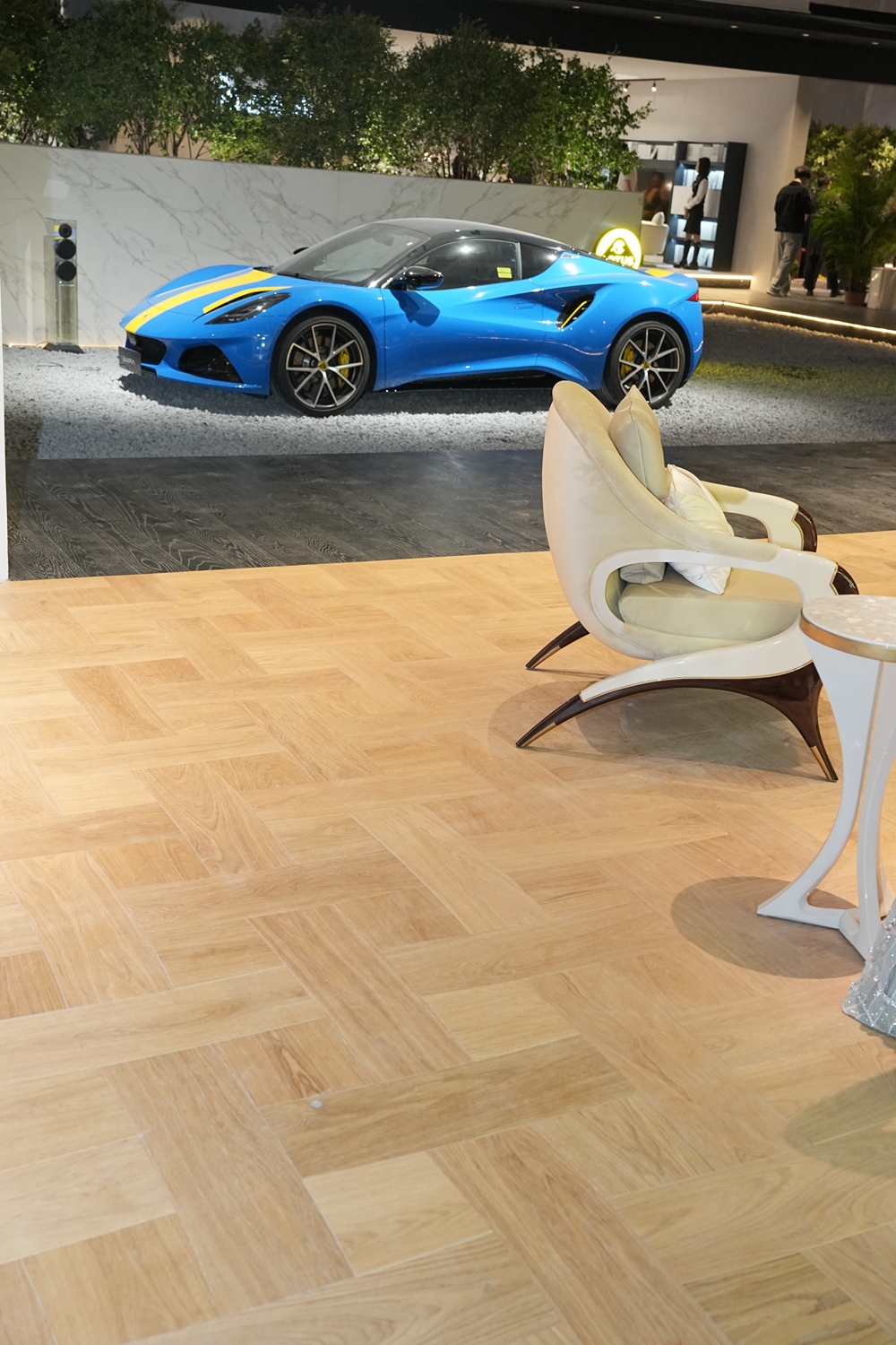金钢铂林地板在联合展示空间中独树一帜,除了金钢铂林品牌主展示区,金钢铂林地板还融入了多个区域,以独特的设计语言与质感肌理,成为展区内的人气聚集点。展区整体设计深度糅合传统美学底蕴与现代设计思维,将Berti近百年的手工拼花工艺与当代潮流元素巧妙并置,在与其他品牌的协同呈现中,共同营造出古典优雅与摩登时尚交织的沉浸式体验。