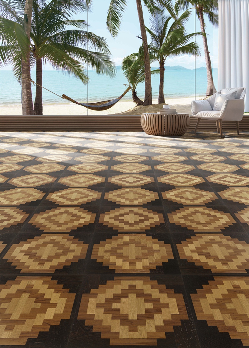 为颂扬墨西哥海岸的美丽和文化,灵感来自Playa del Carmen(卡门海滩),这是一幅具有诱人魅力的画作,其中橡木的温暖本质与柚木和鸡翅木的强烈色调相融合并产生和谐的对立效果,让你的家秒变充满异域风情的度假胜地。