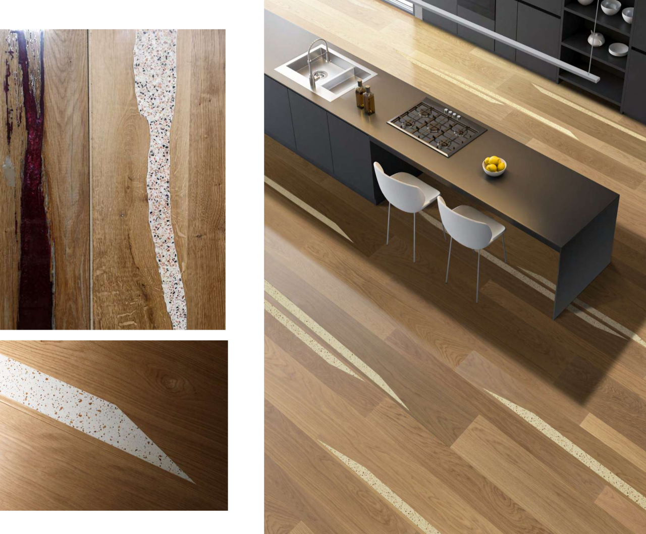 除了不同木种组合而成的镶嵌艺术,Berti艺术拼花地板也在不断探索材料【无界限】的可能。
