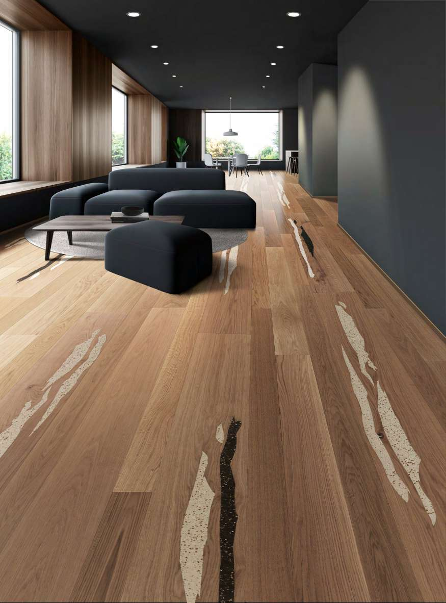 于是设计师们设计出令人着迷的Stripe系列,将不同材质的元素巧妙地结合在一起,创造出和谐且平衡的木地板艺术美学。
