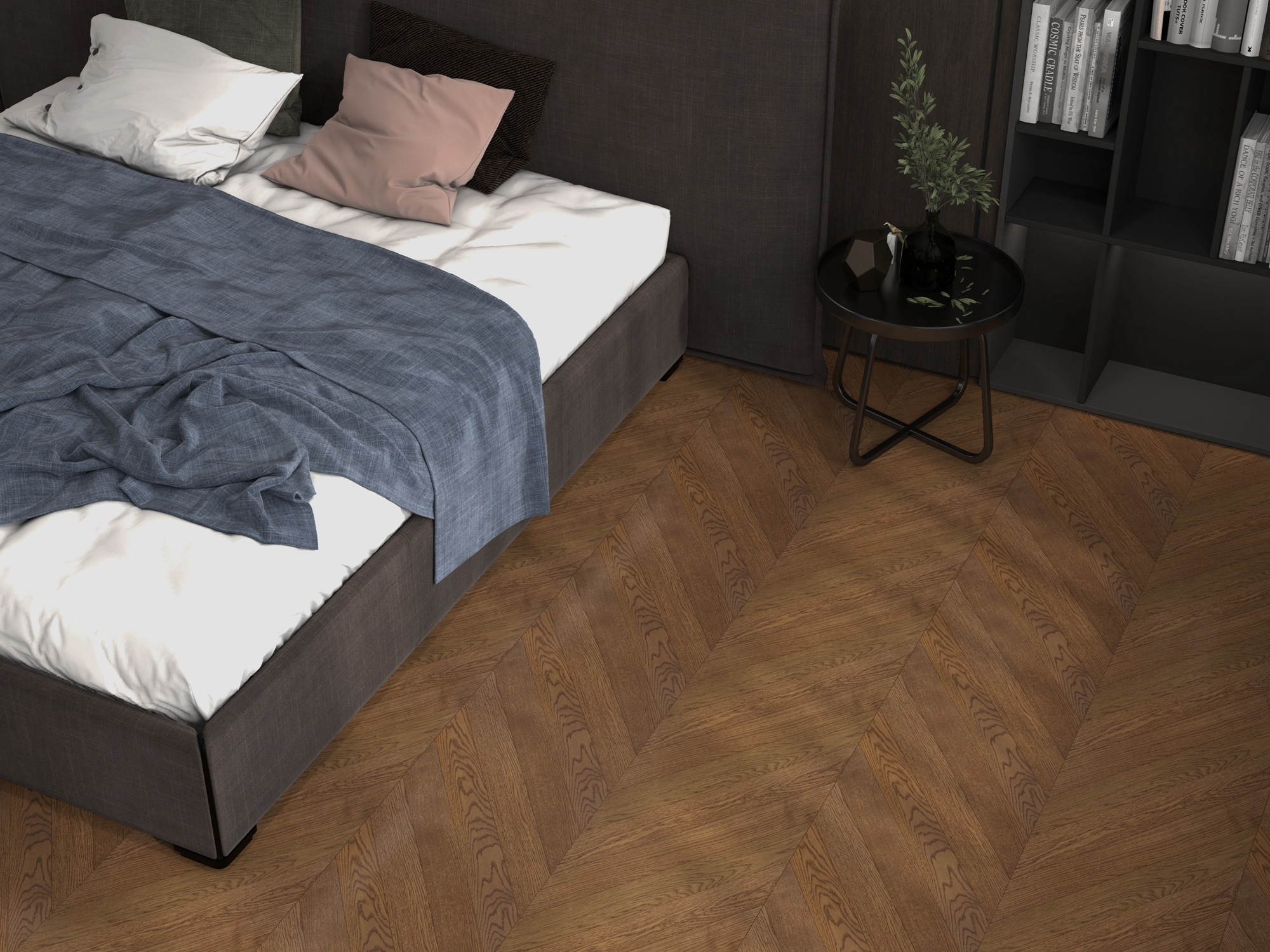 沉稳有内涵的棕咖色鱼骨拼地板,如同岁月沉淀的香醇咖啡,散发着复古而优雅的气息。
