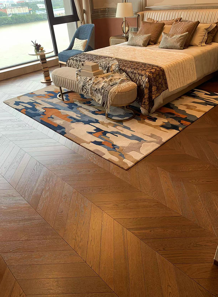 在静止的空间里,荡起满室旖旎,鱼骨拼木地板,演绎出贵族的奢华感,高级的时尚感,为你上演一场视觉盛宴。
