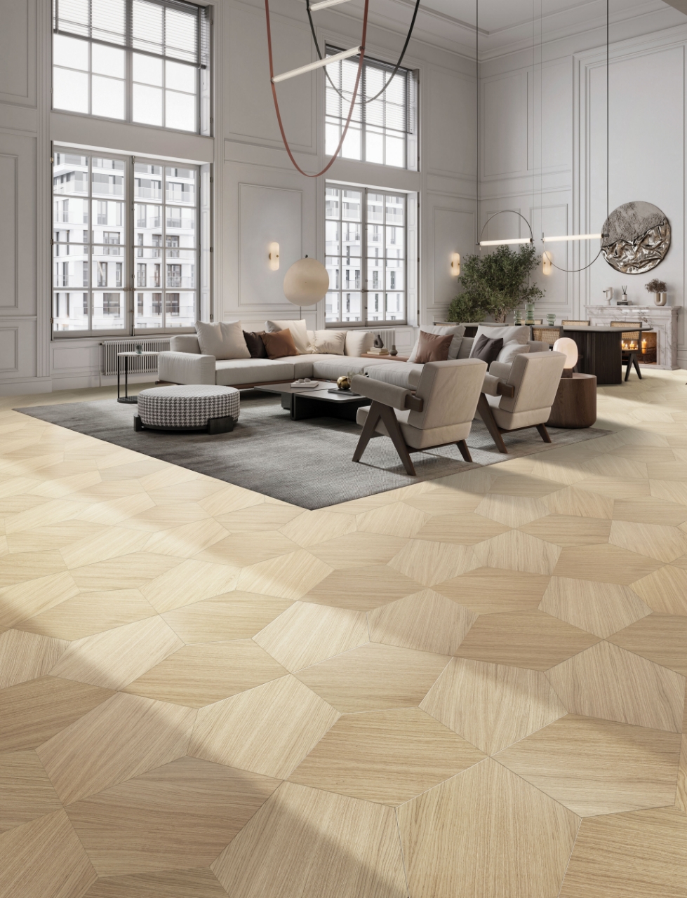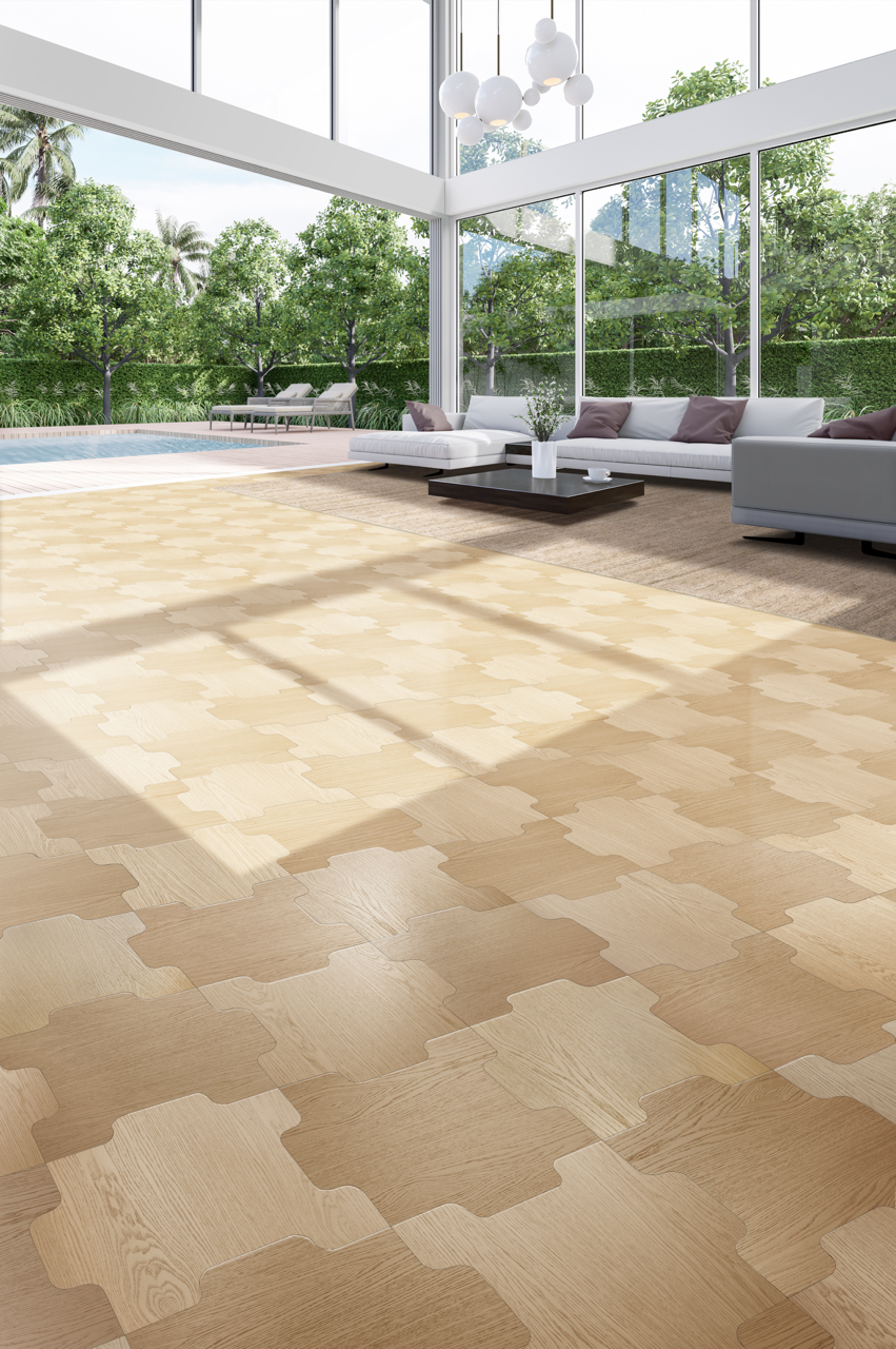 意大利Berti I-wood系列下的ICA地板,设计灵感来源于绗缝工艺,ICA 地板由2-4个模块组成,仿佛拥有魔法般变幻出多种风格,为家居空间融入无限趣味性,让家居空间更具个性化和艺术感。