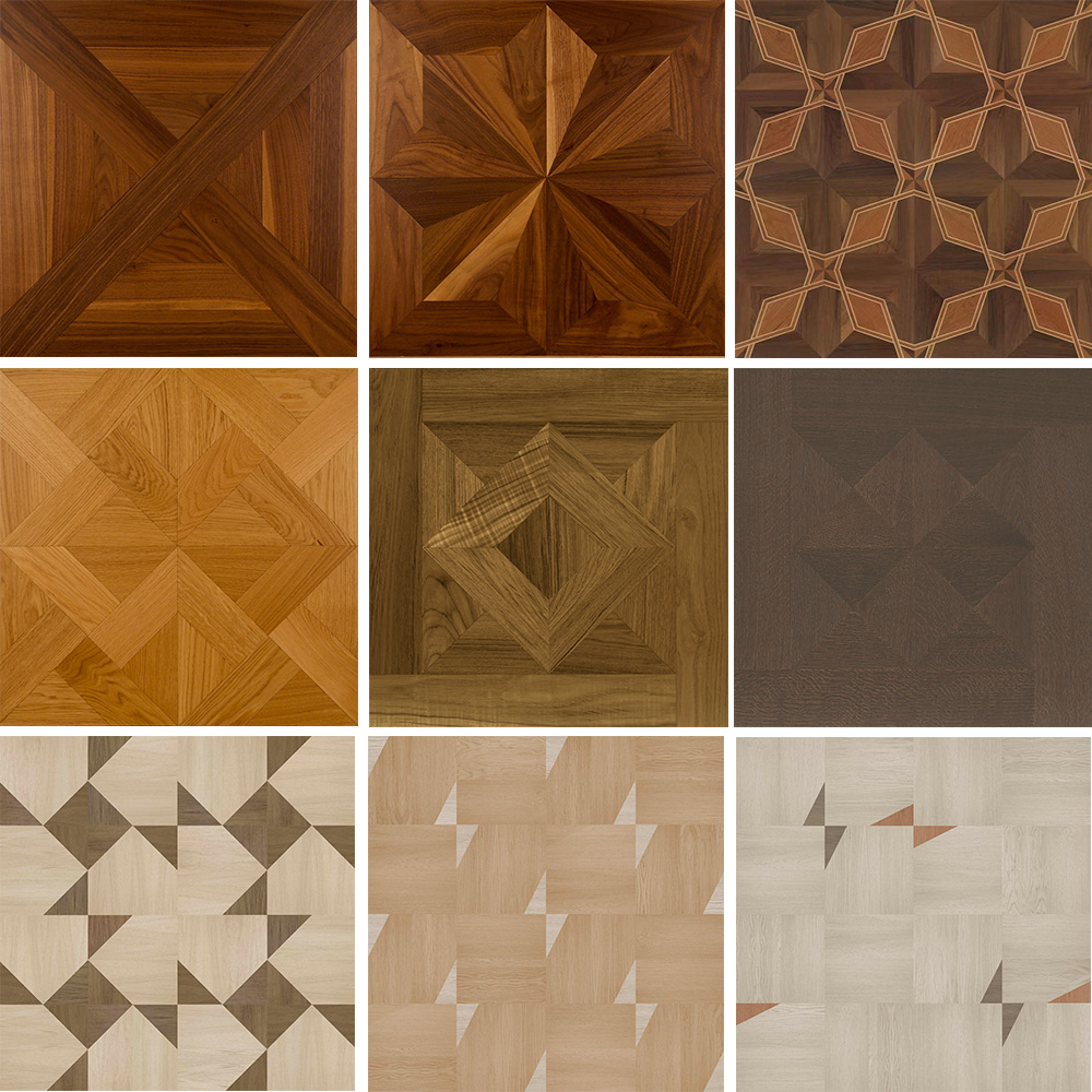 意大利Berti几何拼花地板,将正方形、三角形、菱形等基础几何图形,通过巧妙的排列组合,创造出千变万化的图案。或对称规整,呈现出秩序井然的美感;或自由灵动,带来富有动感与活力的视觉冲击,满足当下个性空间追求,打破你对传统拼花地板的想象~