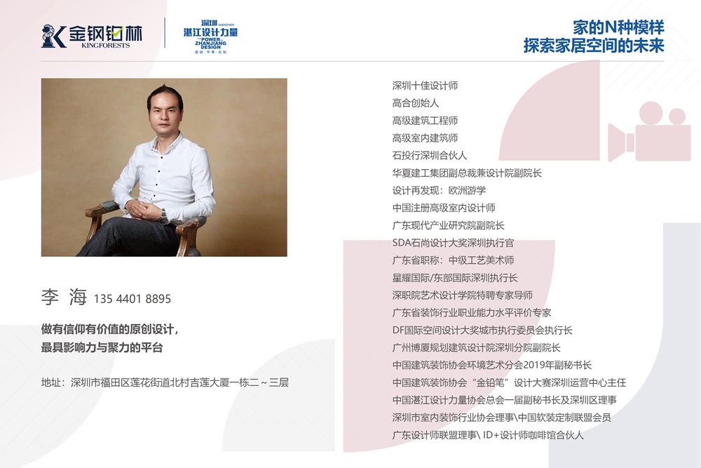参与本次论坛的设计师,都是湛江设计协会的资深设计师,他们不仅是“家居空间模样”的主创者,更是这场“家居生活方式”的洞见者。设计师们从多个维度切入,分享工装设计、家装设计在人群、社会、商业上的最新发展趋势,让大家在城市生活中发挥关于家的N种想象。
