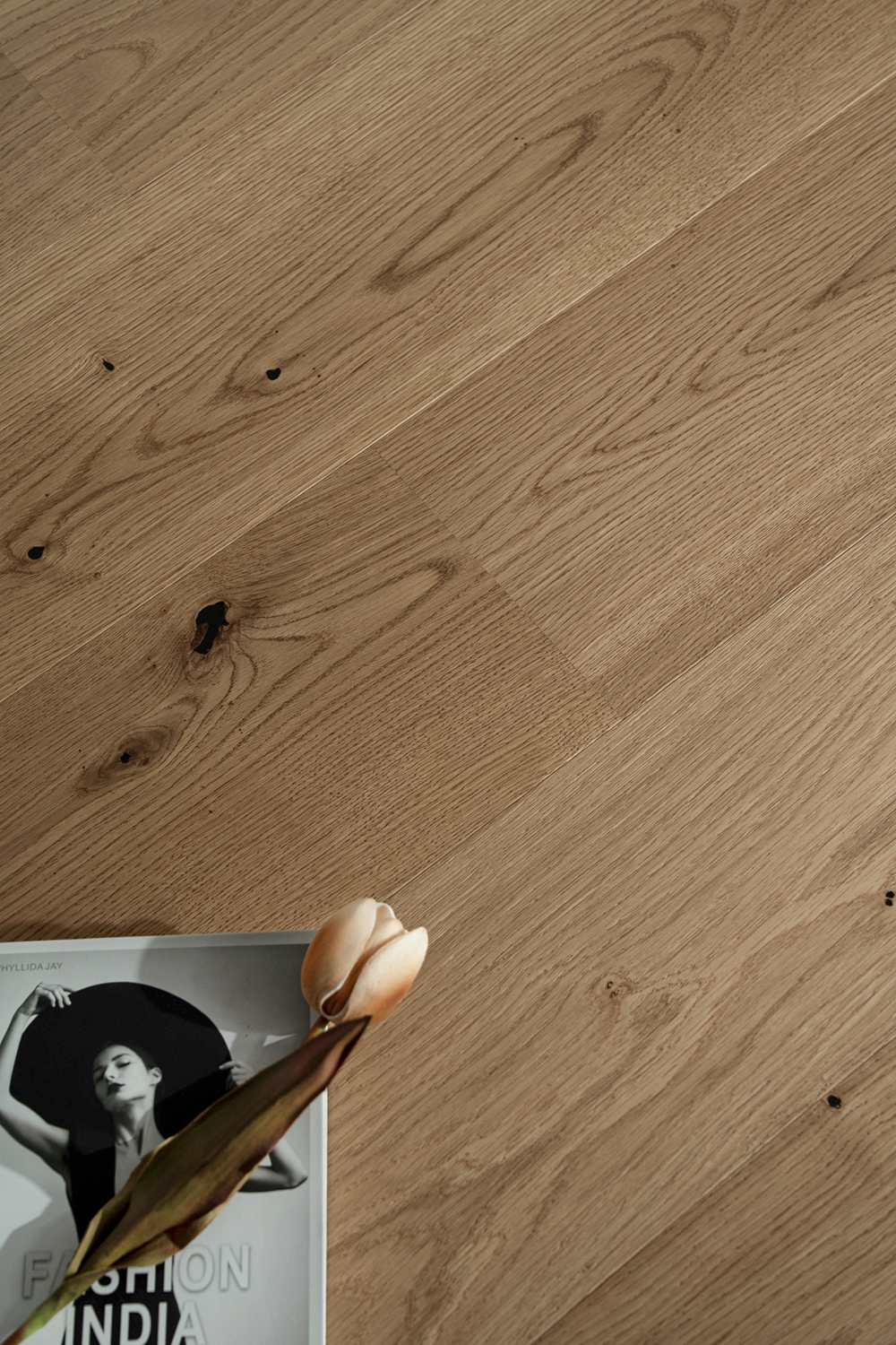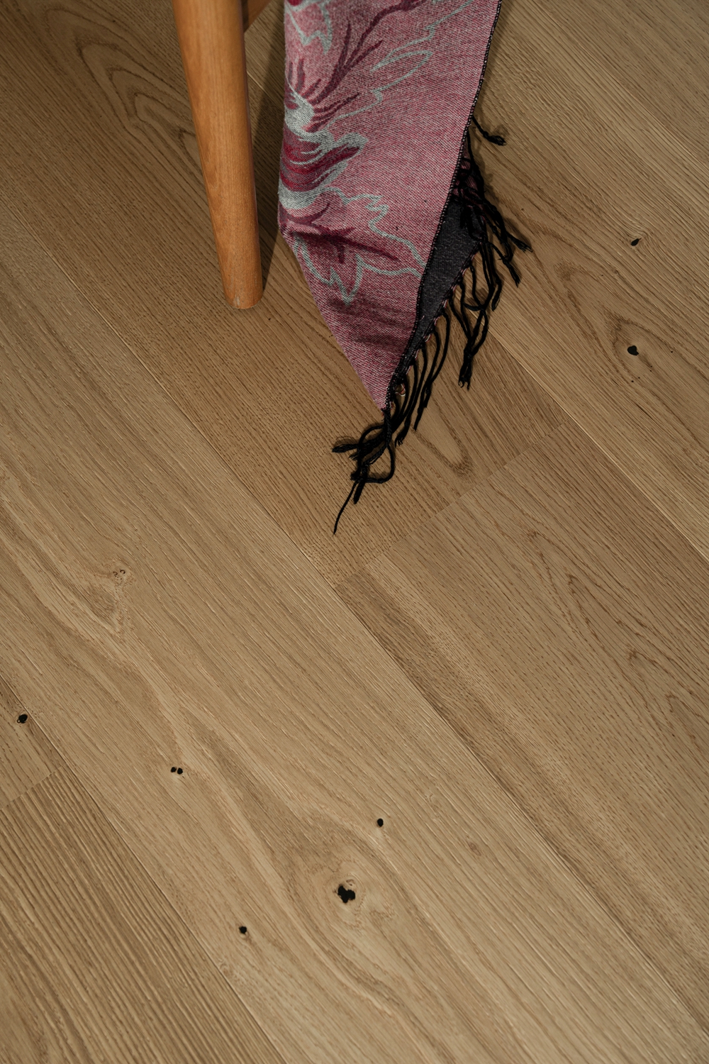 如同未经雕琢的璞玉,保留了木材最原始的色泽。色彩纯净淡雅,节疤如墨点般自然洒落,恰到好处地呈现树木生长的原始痕迹,散发清新脱俗之气。赤足行走其上,仿佛步入北欧森林,晨雾氤氲,呼吸间尽是自然清新。