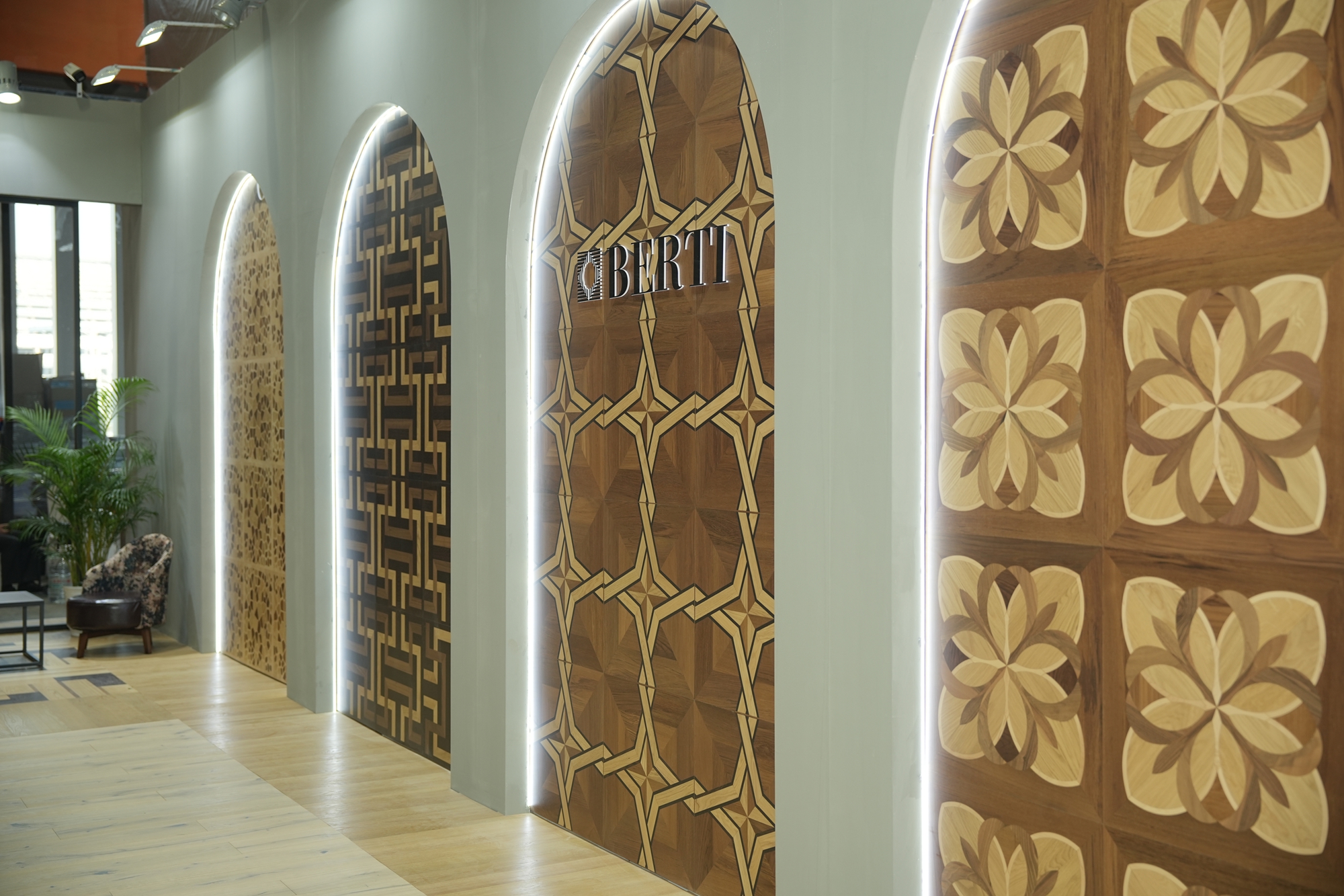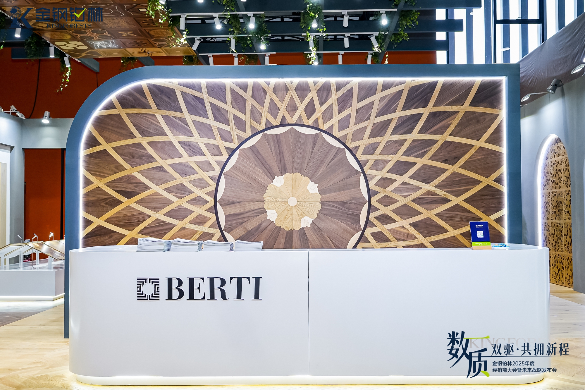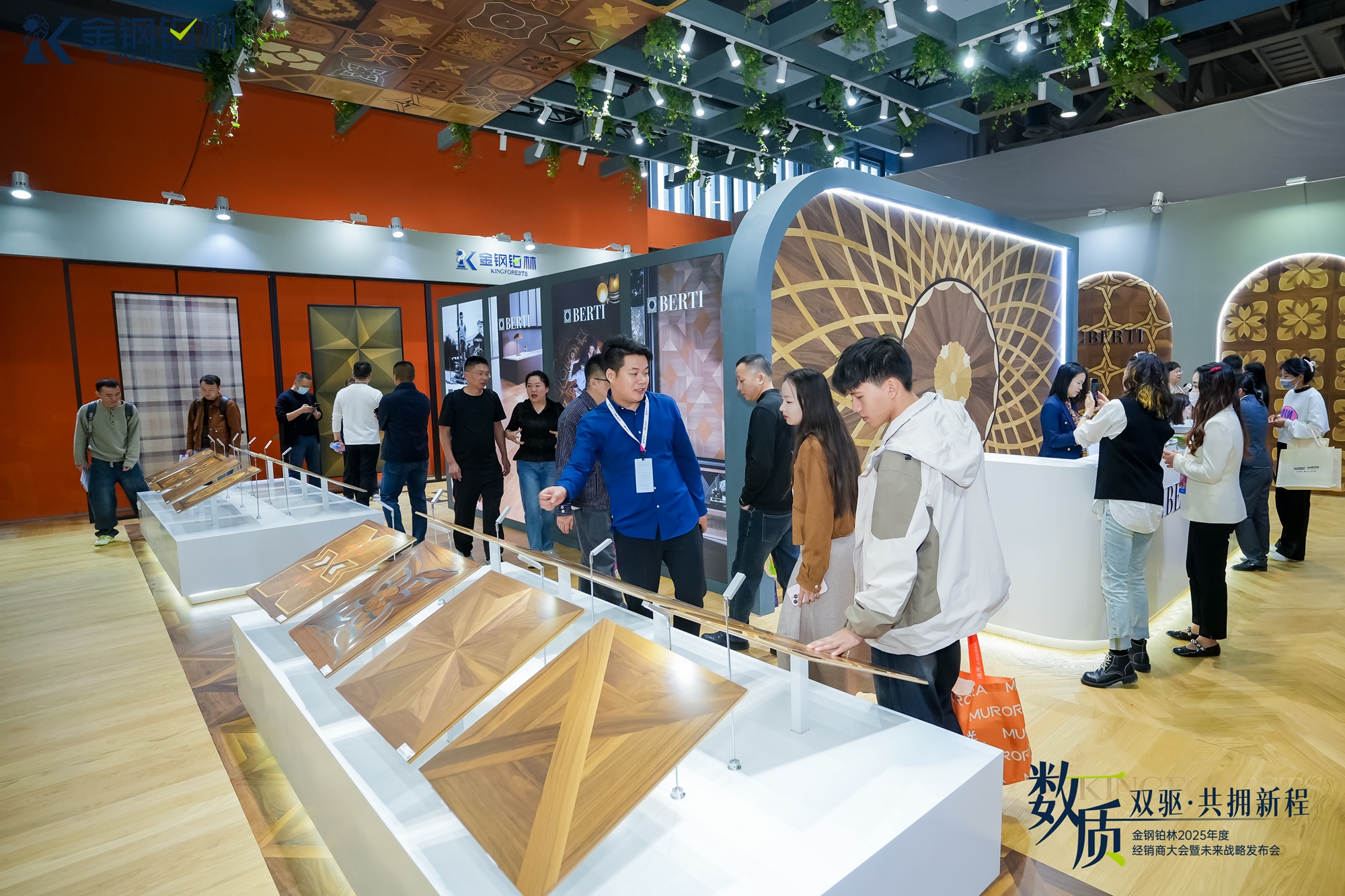 作为本次参展的核心亮点,金钢铂林携手意大利Berti推出的2025年度系列新品,以突破性设计与精湛工艺圈粉无数。品牌不仅将意大利百年美学基因融入艺术拼花,更开创性地引入时装秀场先锋理念,打破地板设计的传统边界,从全新维度探索地面艺术的形态与感官体验,每一款新品都堪称地面艺术的典范之作,牢牢锁定全场目光。