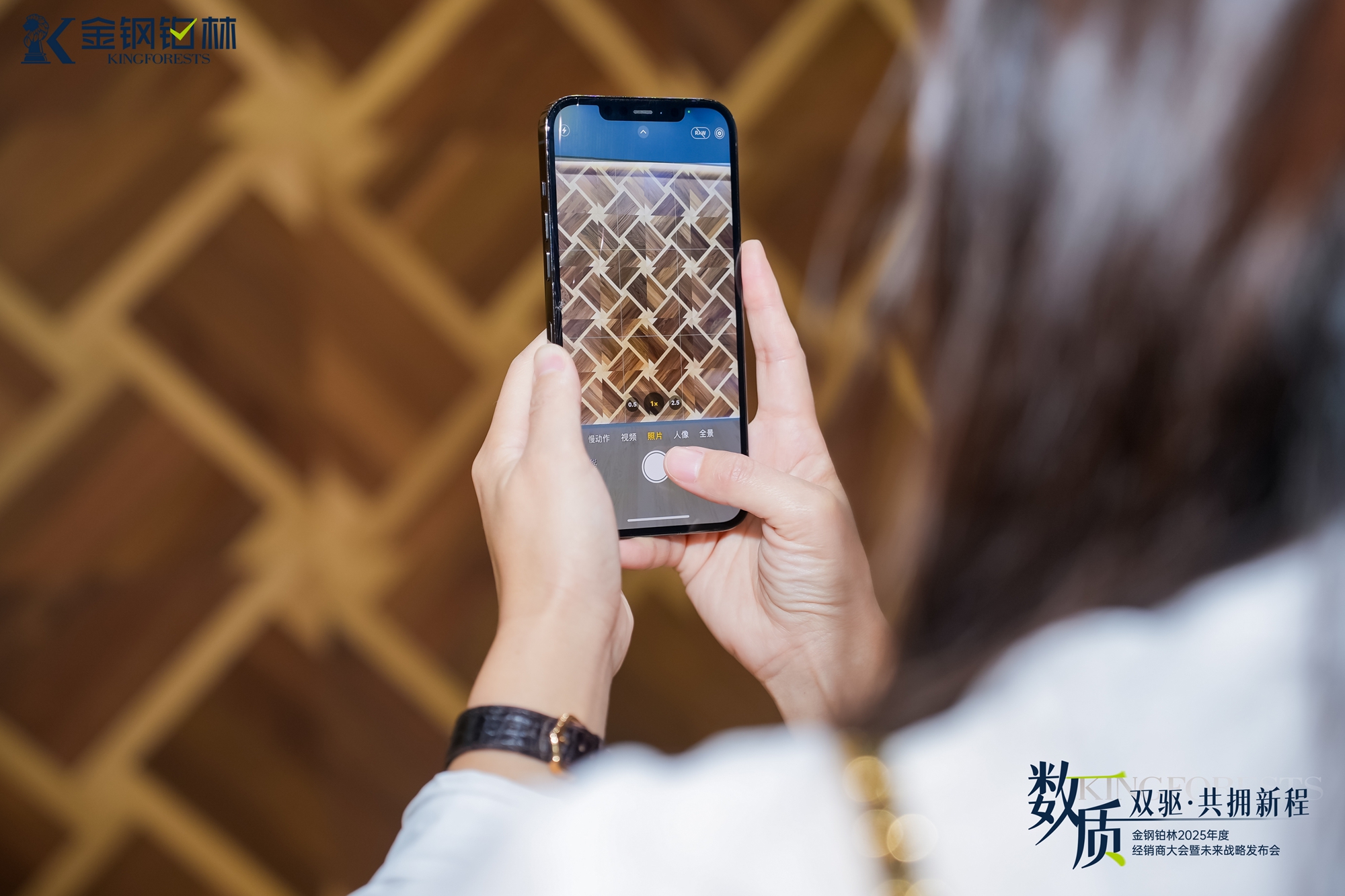 凭借超高的颜值与深厚的内涵,金钢铂林展馆迅速成为现场打卡热点,不少观展者主动停下脚步拍照留念,仔细品鉴不同拼花设计的独特魅力。