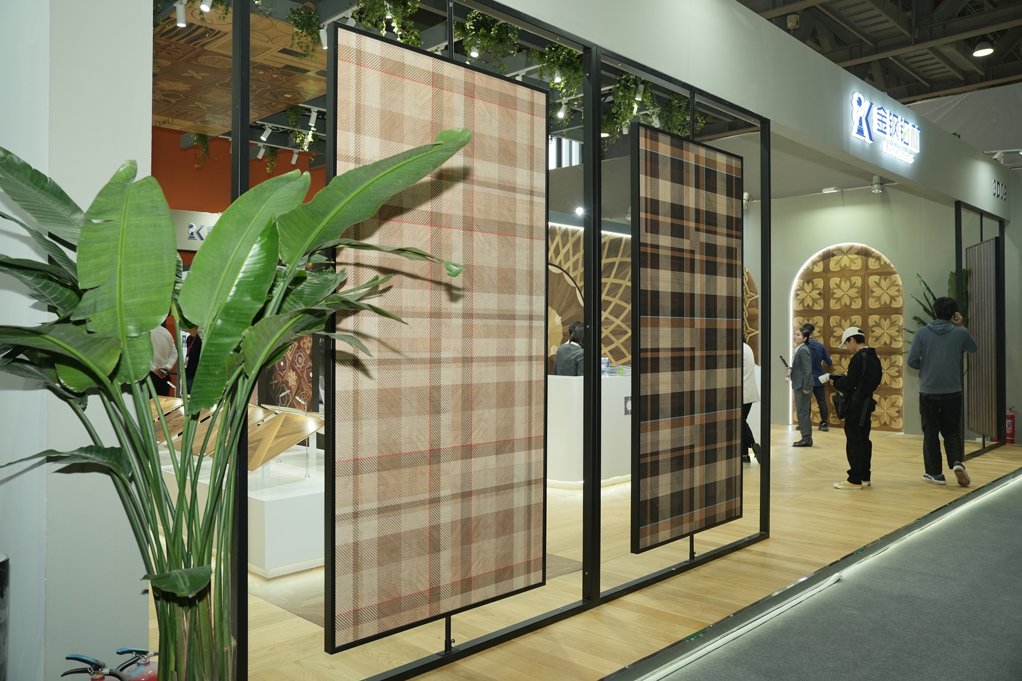 步入展馆,金钢铂林3D09 展位便以独特的美学质感脱颖而出,成为展馆内的人气高地。展馆深度糅合传统美学底蕴与现代设计语言,让经典拼花的繁复精美与新潮设计的灵动形成奇妙对话,引得众多设计师、行业大咖及观展者纷纷驻足,热潮不断。