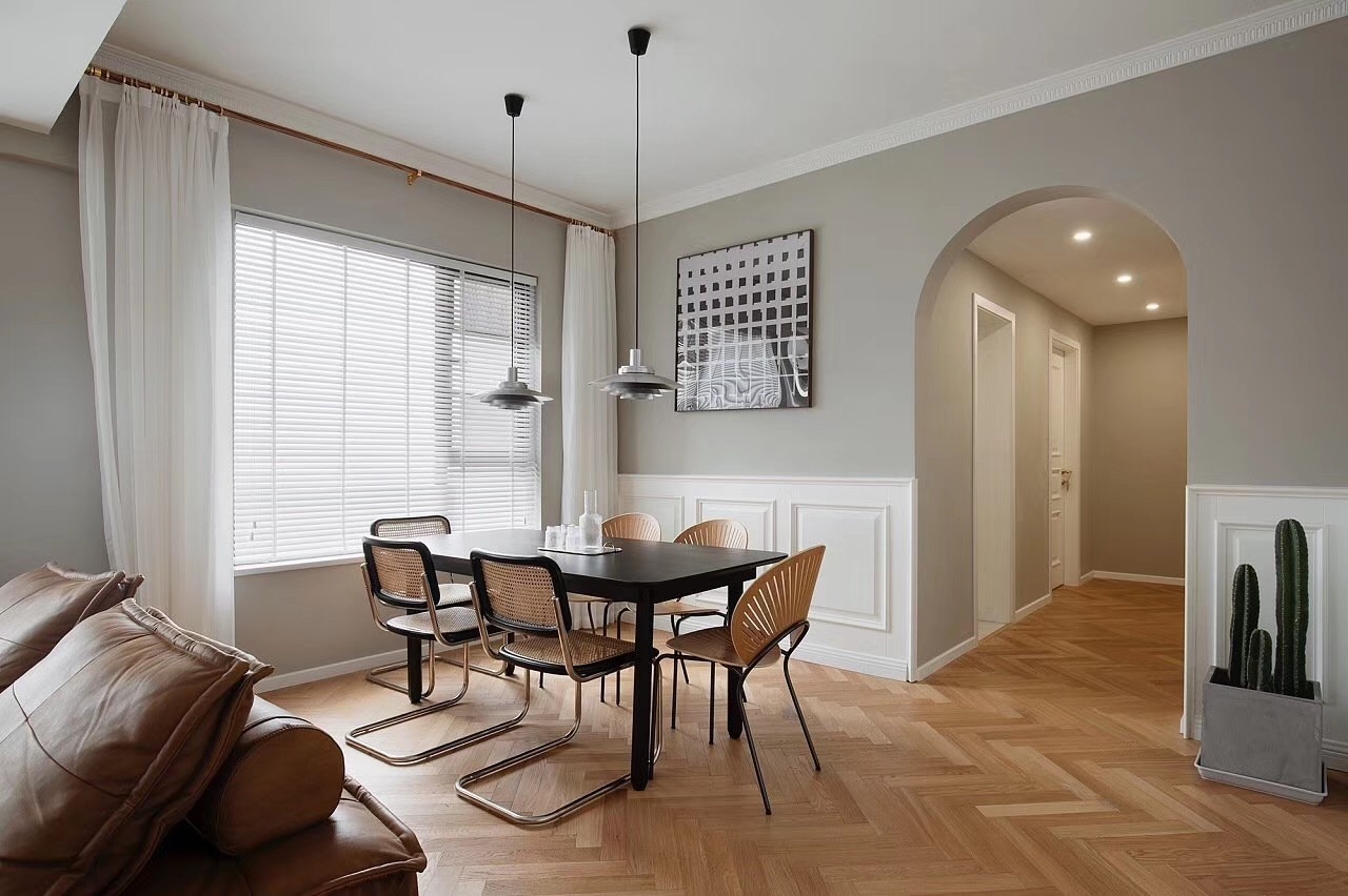法式装修讲究长久耐看,地板材质需满足“环保、耐磨、易保养”三大需求。优先选择实木复合或三层实木,脚感舒适且抗变形能力强,尤其适合有老人小孩的家庭;同时需认准环保标准,避免甲醛超标影响健康;表面耐磨要强,才能应对日常踩踏与摩擦。