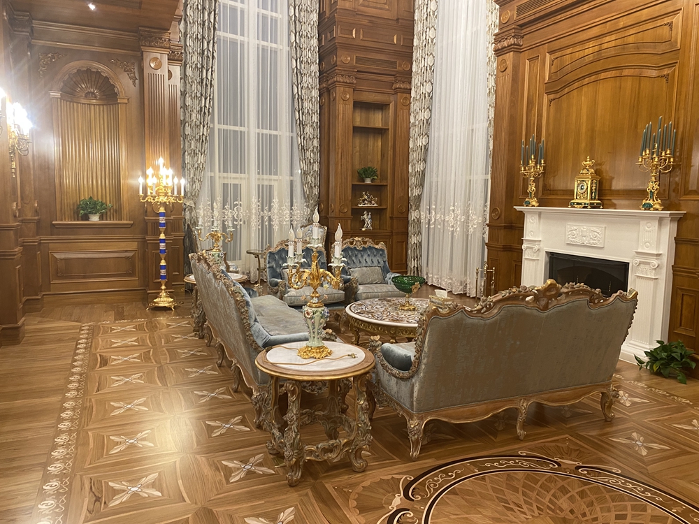 许多豪宅有的偏好超长超宽规格的地板,大幅减少接缝,营造出开阔、沉稳、极具张力的空间气场,有的偏爱艺术拼花,以精妙拼接勾勒出华美的地面画卷,成为空间中流动的艺术焦点。