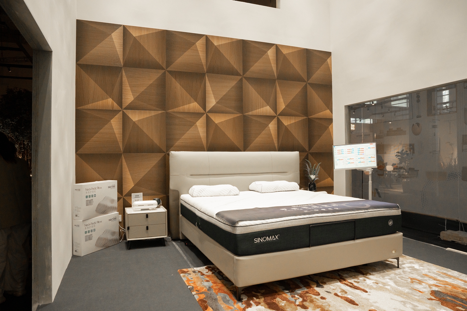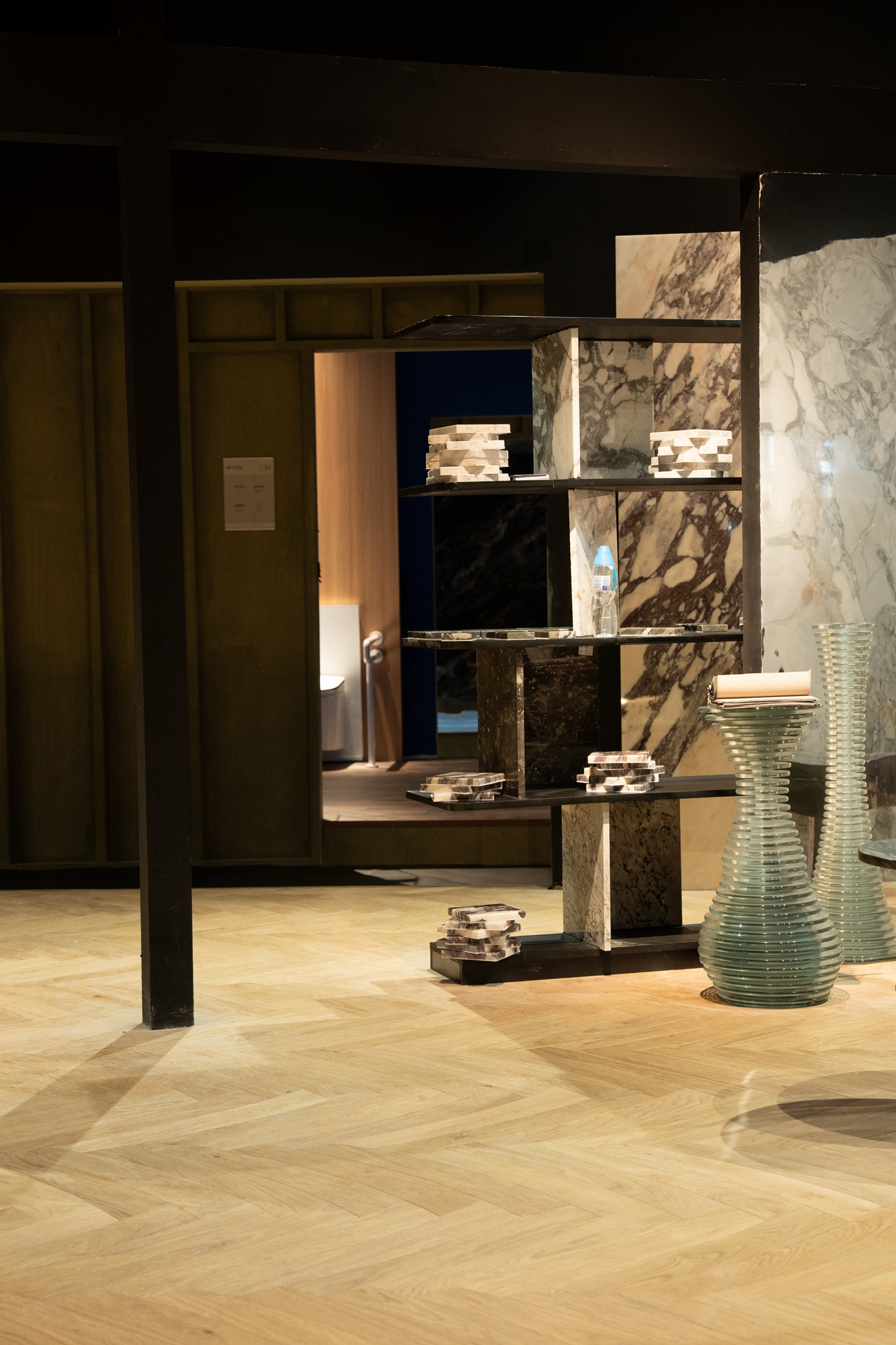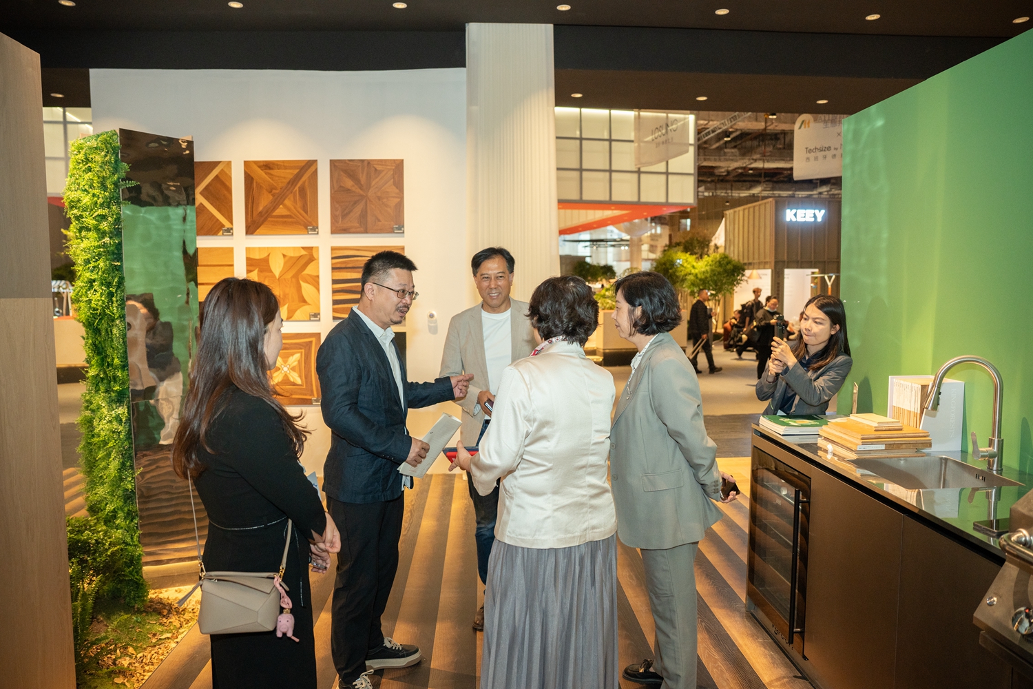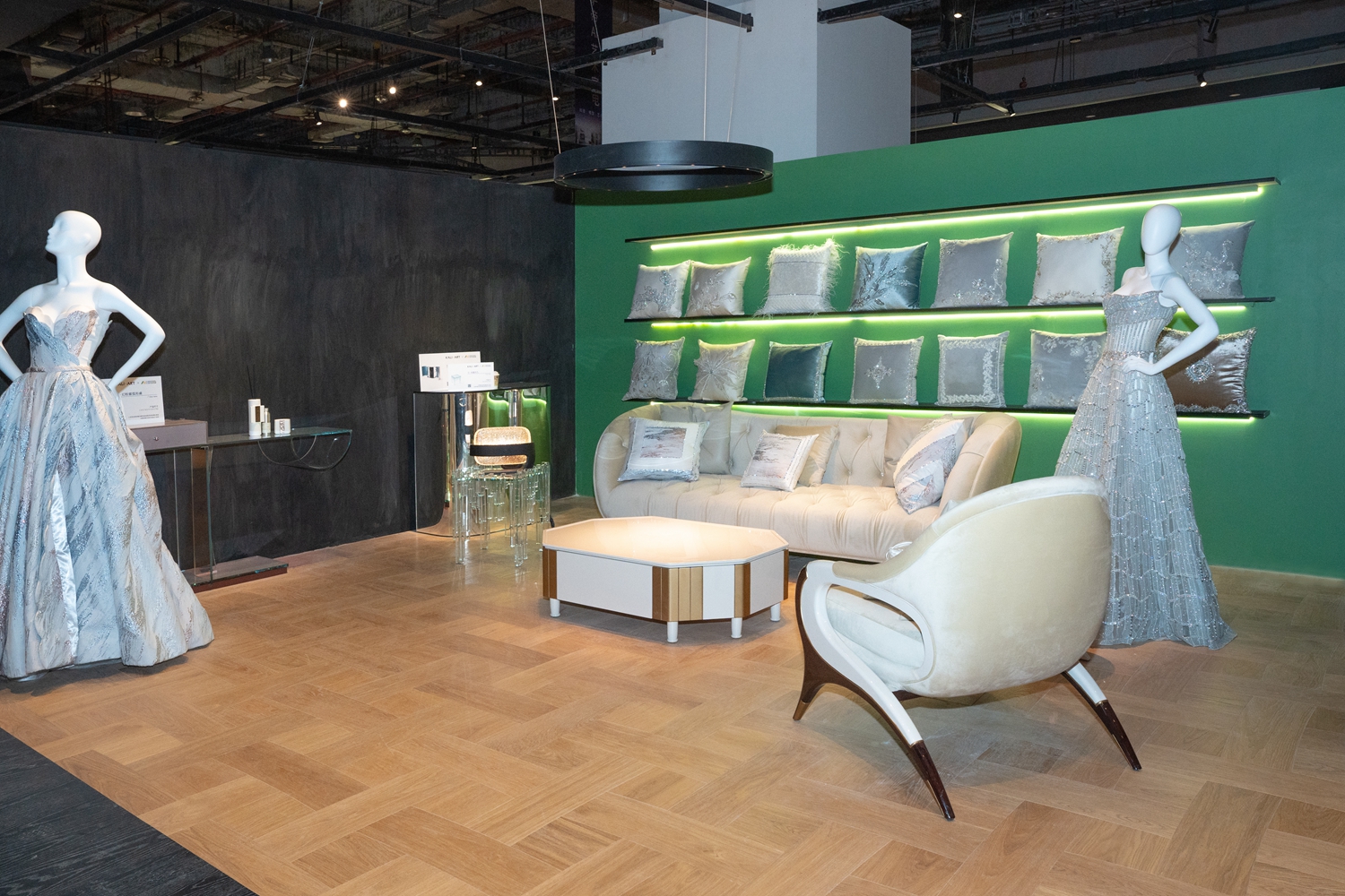 意大利Berti手工拼花地板以近百年的匠艺底蕴融入空间,Diesel 跨界联名系列以大胆的色彩与前卫的苏格兰皇家格纹图案,打破传统地板的设计边界,为年轻潮流的人居空间注入摩登个性;I-wood 系列万花石拼花 “上墙入地”,将自然纹理延伸至休憩空间,让睡眠区的质感更显统一高级;在Jimmy Choo浪漫主题展区,Berti艺术地板与Jimmy Choo璀璨场景相融,让婚纱与水晶鞋的高光时刻,在质感地面的映衬下更具仪式感……完美诠释 “让每一寸地面都成为艺术” 的品牌追求。