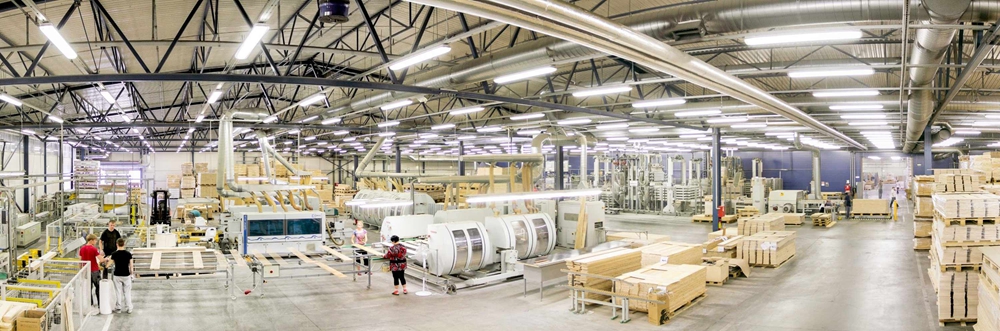 从木材干燥到成品包装,木地板生产的每一个环节都在Esta Parket工厂内部完成,确保全流程可控,从而实现更高的质量和稳定性。值得一提的是,工厂内所有生产建筑相互连接,保证内部气候(湿度和温度)均匀一致,为地板的稳定性能提供坚实保障。