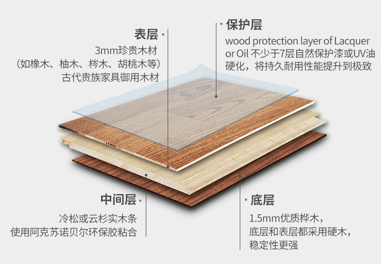 在高端家居地面材料中,三层实木地板凭借天然质感与超强稳定性,成为兼顾美观与实用的优选。三层实木并非简单的木材叠加,而是源自欧洲百年前为解决实木变形难题而诞生的匠心工艺,从王室宫廷到现代家庭,始终以独特结构与耐用品质,定义高端地板的标准。