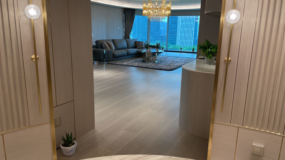 金钢铂林灰色系三层实木,不仅颜值抗打,“内芯”稳定,还兼具易打理的功能