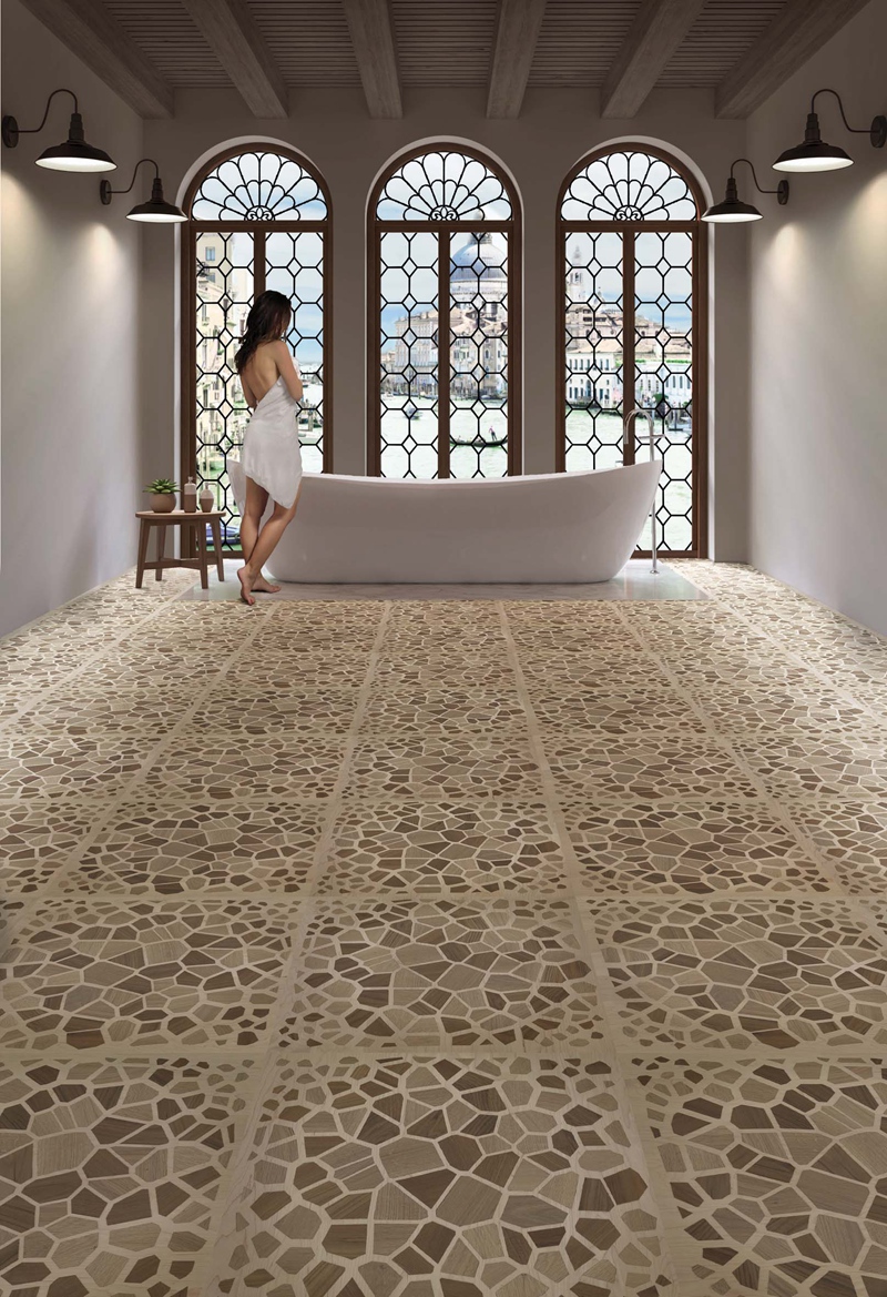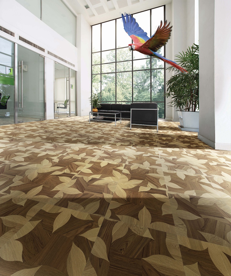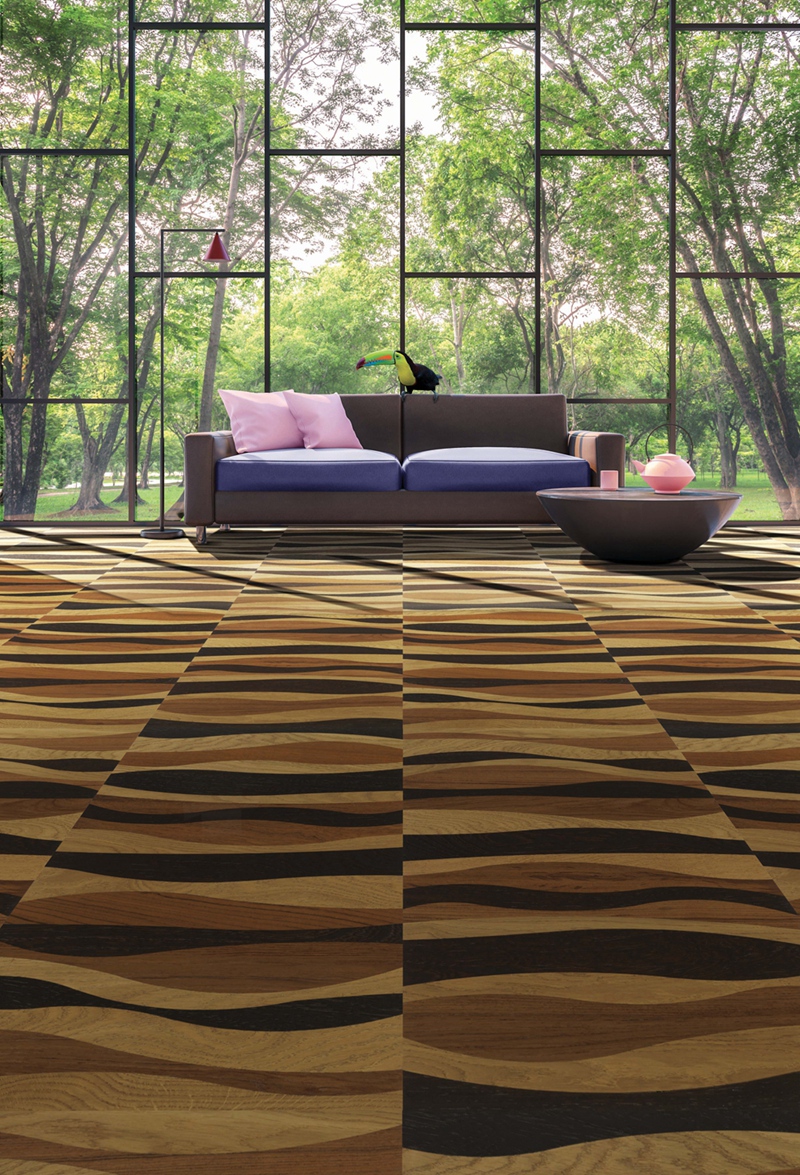 灵感来自南美洲的大自然风景,其葱郁蓬勃的景象未受破坏。高冲击力的效果是由橡木和亚洲柚木的巧妙互动创造而出,仿佛枫叶洒落一地,宛如来自埃舍尔的雕刻作品。