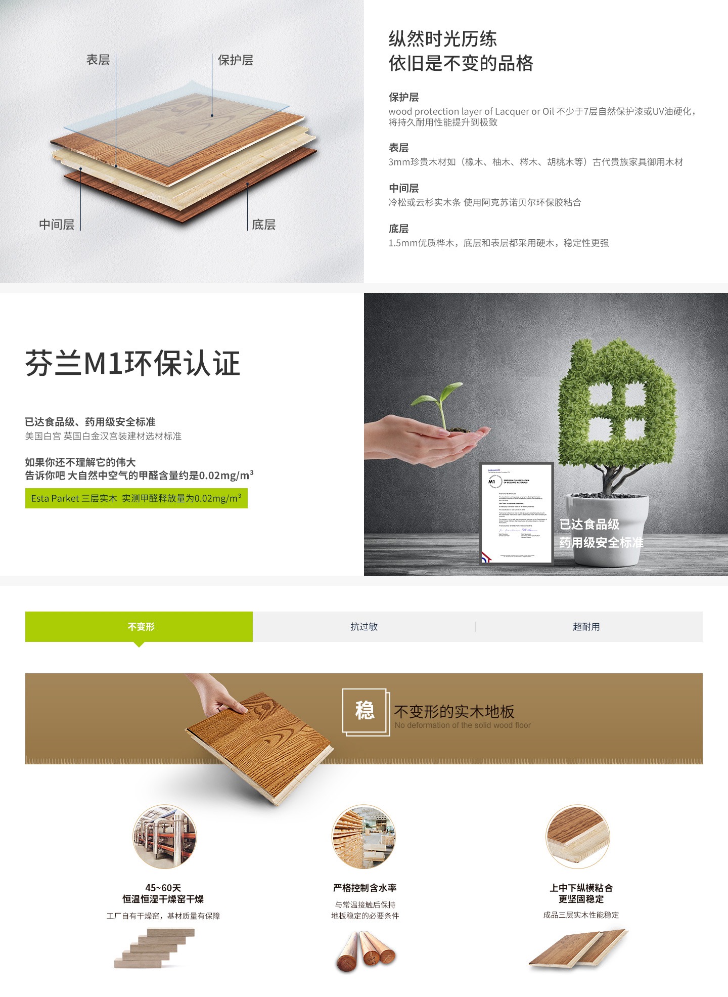 芬兰M1环保认证、实木地板标签、森林管理认证、必维国际检验认证、欧洲实木镶拼地板厂商联合会成员等